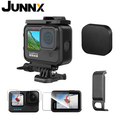JUNNX Go Pro 10 9 pellicole protettive per schermo con obiettivo sportivo nero pellicola in vetro temperato per accessori per la protezione dell'obiettivo Gopro Hero